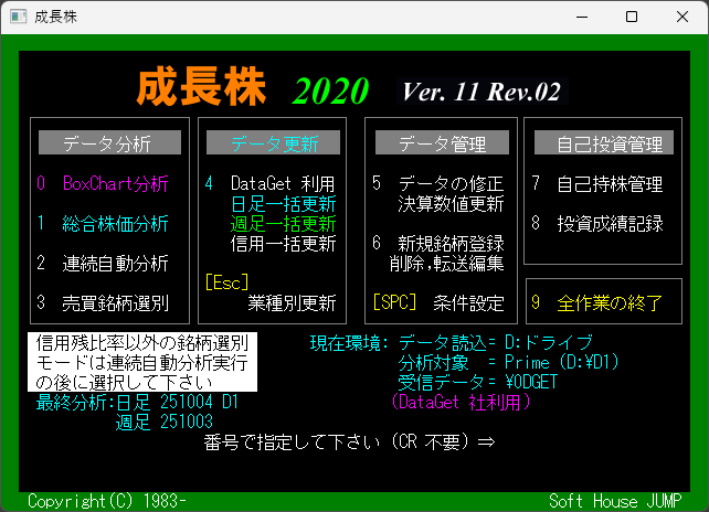 - 「成長株2020」はWindows 11,10 (32, 64 bit) 対応で、1987年、日経新聞社主催の当時の市販商品